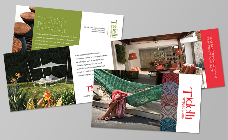 Client: Tidelli. Targeted mailing send to 2,000+ residents near store location. Designed, printed and mailed by The Dot.